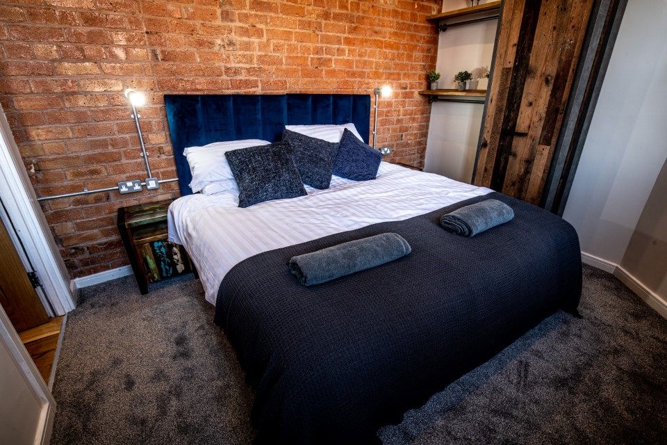 Step into a space where contemporary comfort meets the charm of Birmingham’s industrial heritage. Our thoughtfully designed apartment features exposed brick walls, high ceilings, open plan drop down fireplace, and chic urnishings that create a warm and invitingatmosphere.